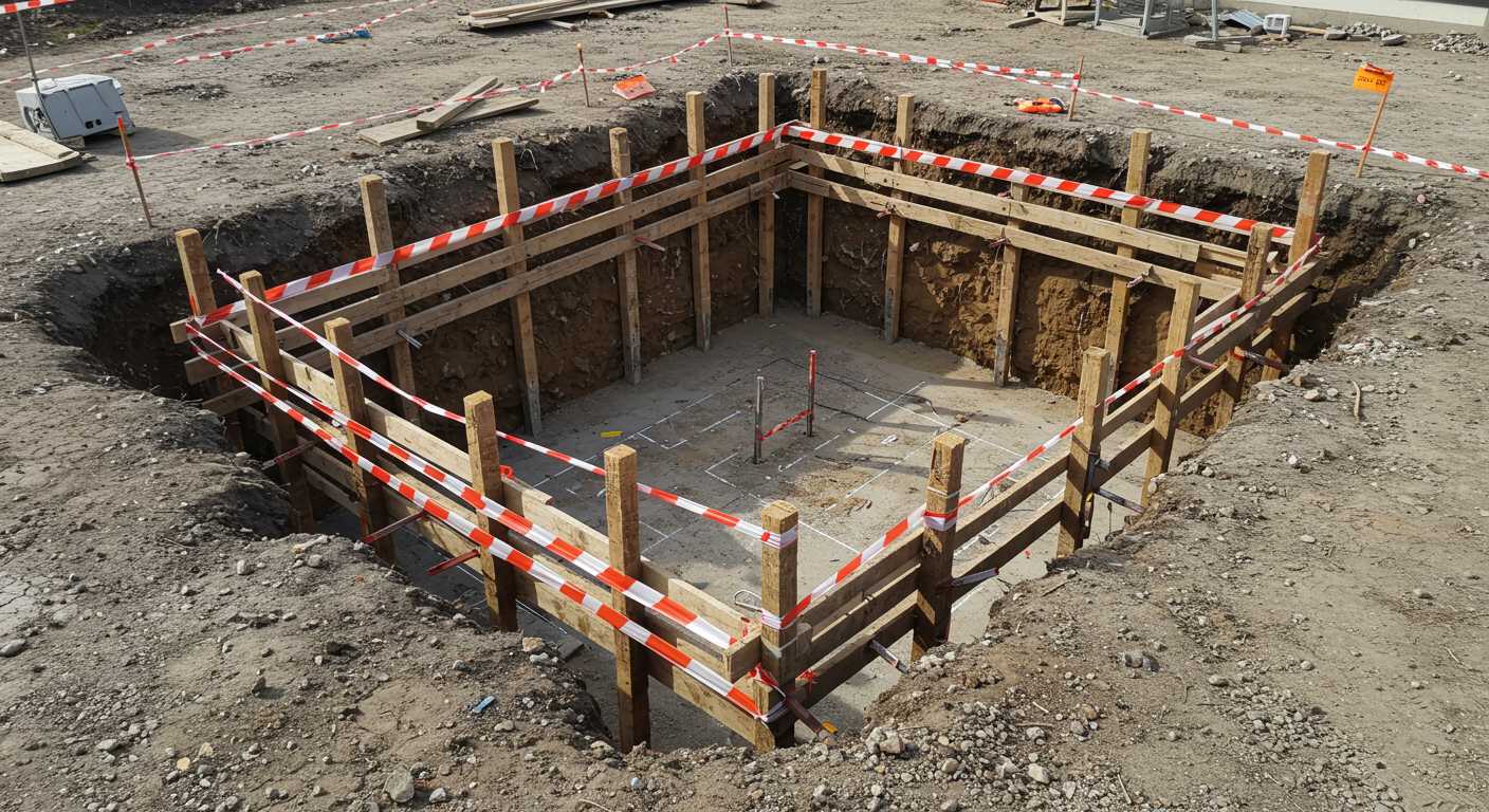 Далее следует установить ориентиры: на ключевых точках участка вбиваются колышки, между которыми натягиваются шнуры, обозначающие контуры котлована. Важно проверять перпендикулярность и размеры по диагоналям, чтобы убедиться в правильной геометрии разметки. Если котлован сложной формы, рекомендуется делать промежуточные измерения и использовать дополнительные вспомогательные отметки. По окончании разметки нужно составить акт и зафиксировать координаты, чтобы при выполнении земляных работ была возможность постоянного контроля и сверки с проектом.