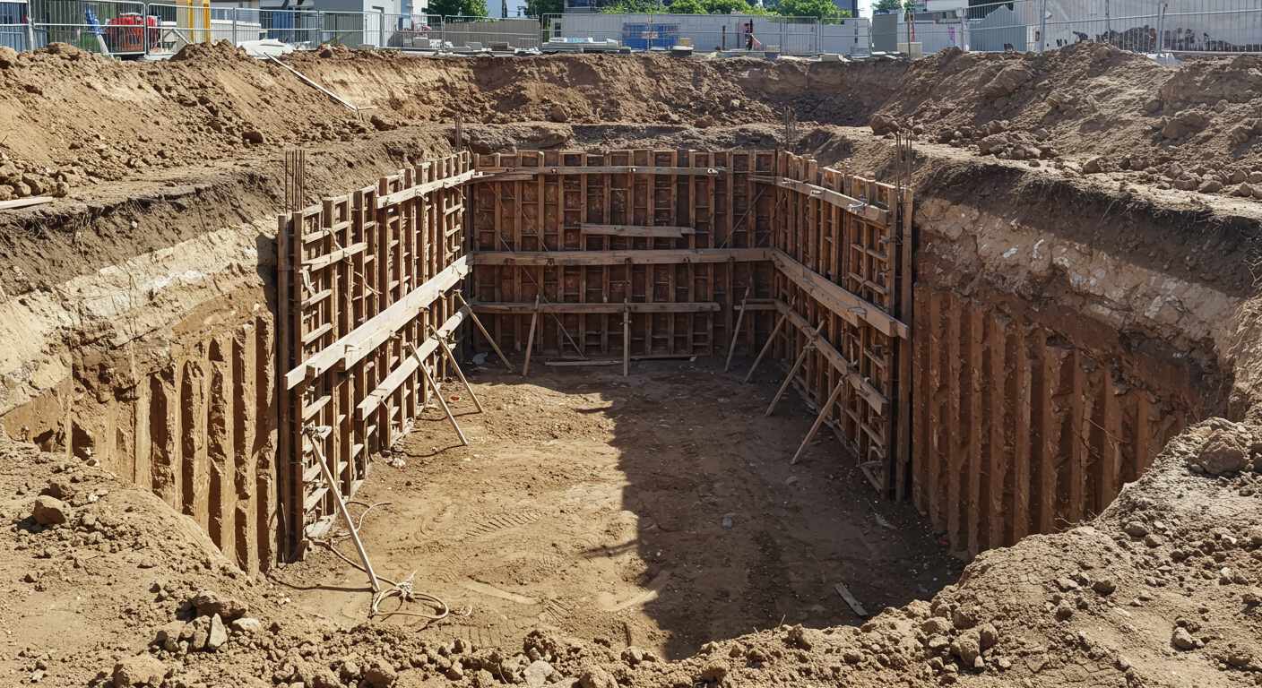 Следующий этап — расчистка территории от растительности, мусора и старых построек, если таковые имеются. Очень важно обеспечить ровную поверхность и устранить препятствия для техники. Далее происходит выравнивание участка и формирование уклонов для отвода воды, что предотвращает скопление осадков в котловане и снижает риск подтопления.