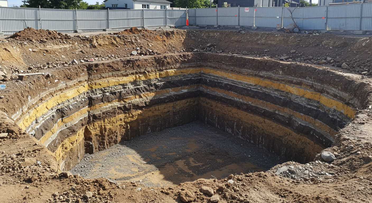 Технические условия площадки и геологические характеристики грунтов играют решающую роль при проектировании котлована. Тип грунта определяет способы разработки: песчаные и глинистые почвы требуют разных методов экскавации и укрепления. Особое внимание уделяется уровню грунтовых вод — высокая влажность может стать причиной подтопления котлована и вызвать просадки фундамента, если не предусмотреть адекватные меры дренажа.