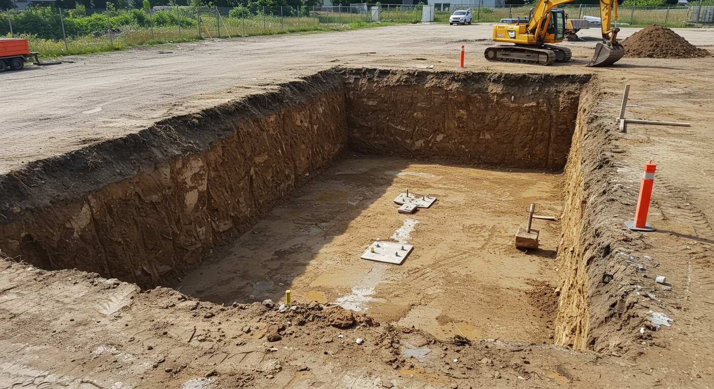 Грунт — ключевой фактор, определяющий сложность и стоимость разработки котлована. Песчаные и супесчаные грунты легко разрабатываются, что снижает время и затраты на работы. В отличие от них, глинистые, торфяные и скальные слои требуют применения дополнительного оборудования, усилий и специальных технологий, например, бурения, дробления или укрепления стенок. Наличие грунтовых вод усложняет работы и ведёт к необходимости установки дренажных систем, что также увеличивает расходы.