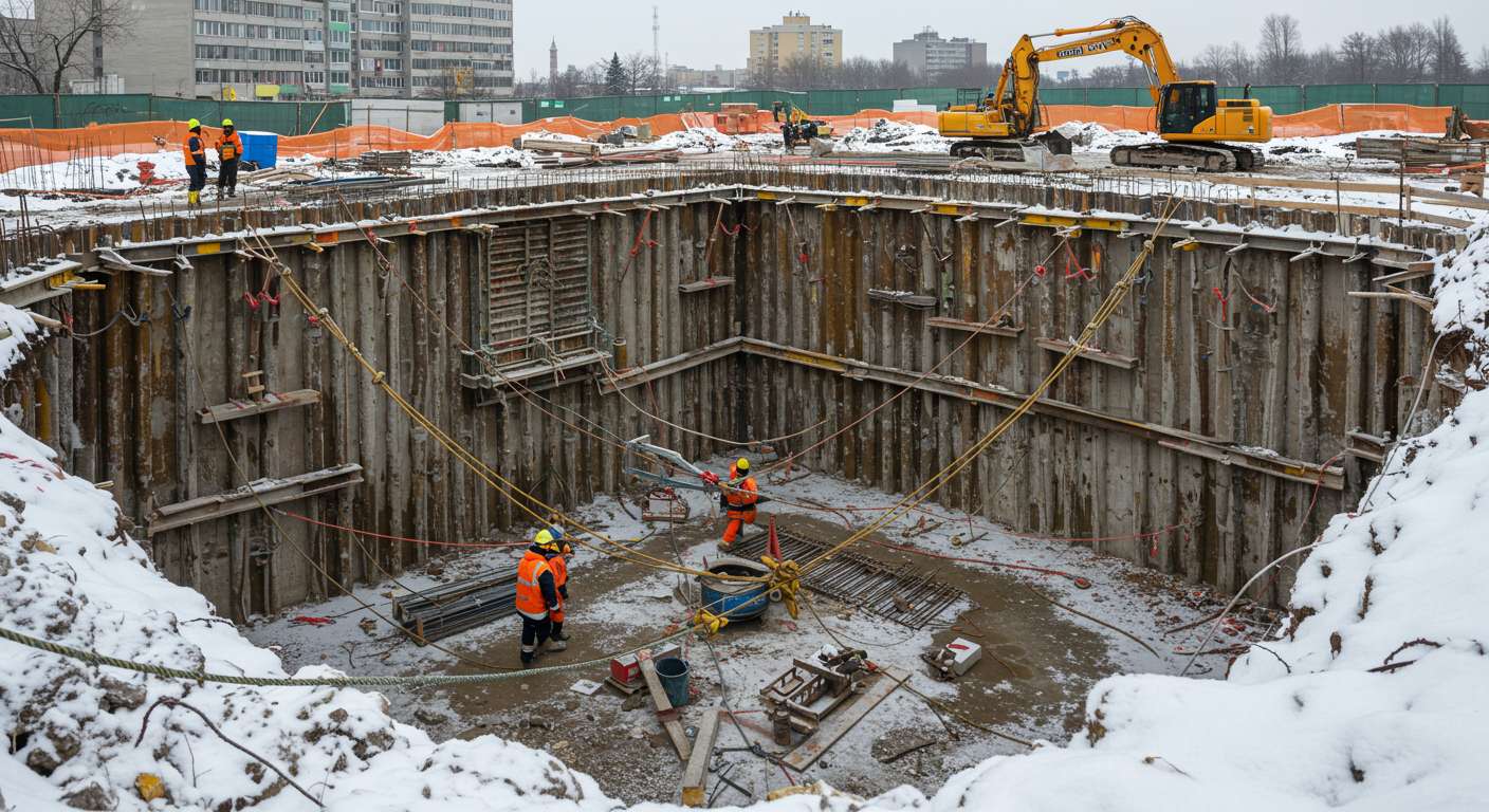 Зима диктует свои правила в строительстве: низкие температуры, снегопады, обледенение и замерзший грунт создают дополнительные трудности при монтаже шпунтовых конструкций. Одним из ключевых факторов является повышенная твердость грунта, что затрудняет забивку шпунтов. При замерзании земля становится менее пластичной, что увеличивает сопротивление и требует применения более мощного оборудования или специальных методов для успешной установки элементов.